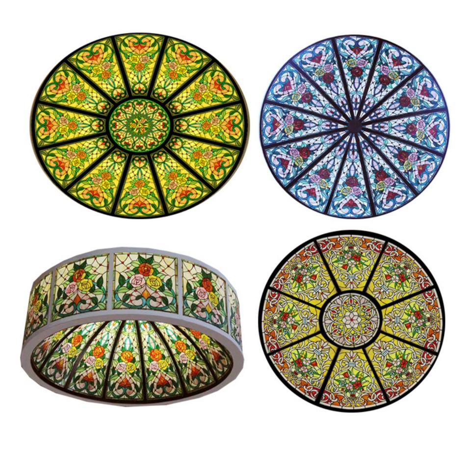 Cúpula de Iluminación para Hotel, Estilo Europeo, con Bloques de Vidrio con Diseño de Rosas, Personalizada de Fábrica, Tipo Tiffany Skyline