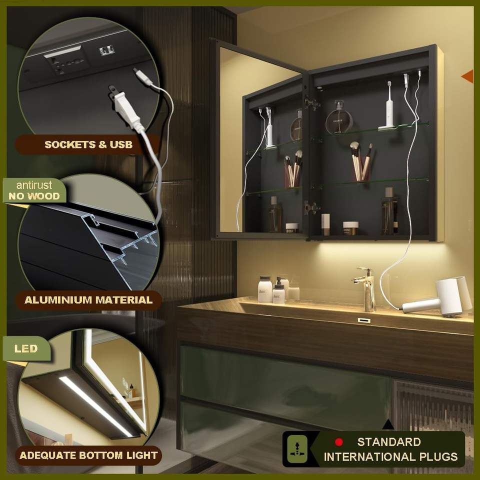 Fábrica personalizada al por mayor de alta definición multifuncional desempañador táctil montado en la pared gabinete de espejo de baño inteligente