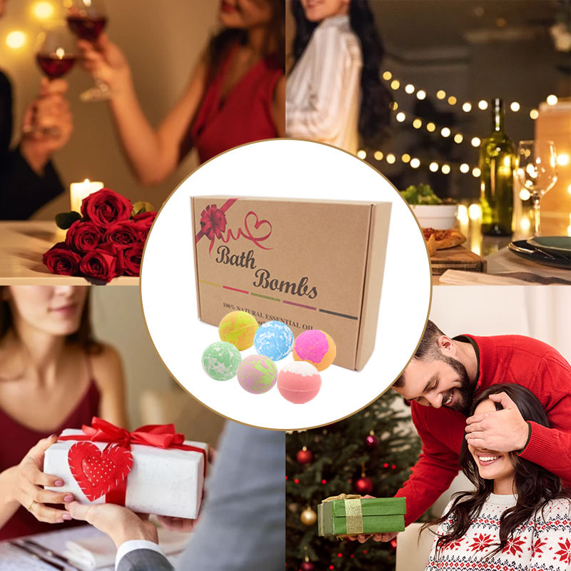 Fábrica personalizada al por mayor ingredientes seguros naturales burbuja juguetes de Navidad para niños bombas de baño conjunto de regalo