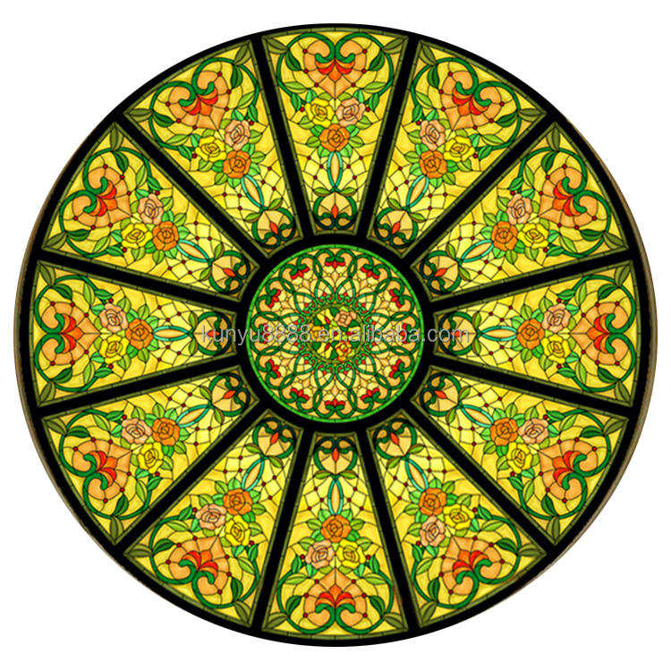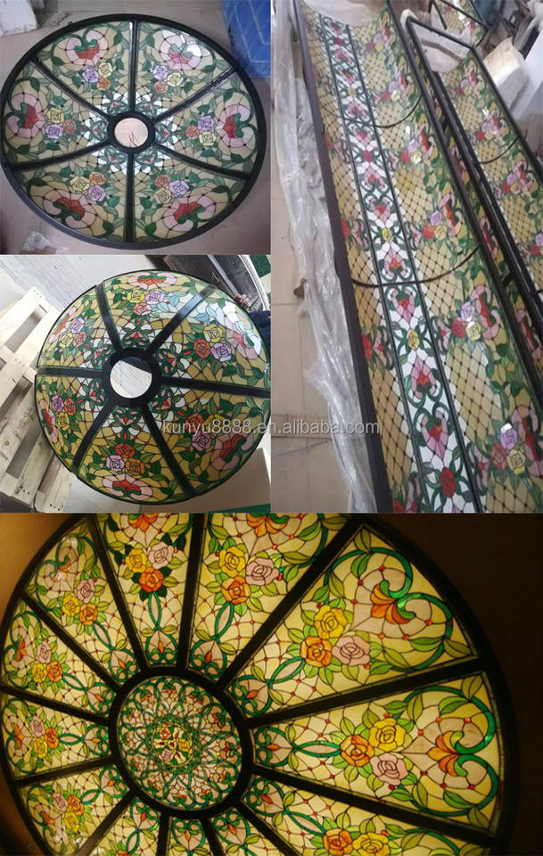Fábrica personaliza iluminación y decoración de techo interior estilo catedral europea con vidrieras templadas.