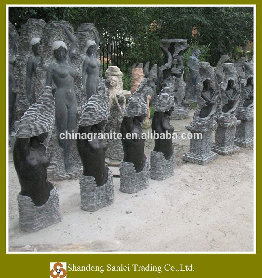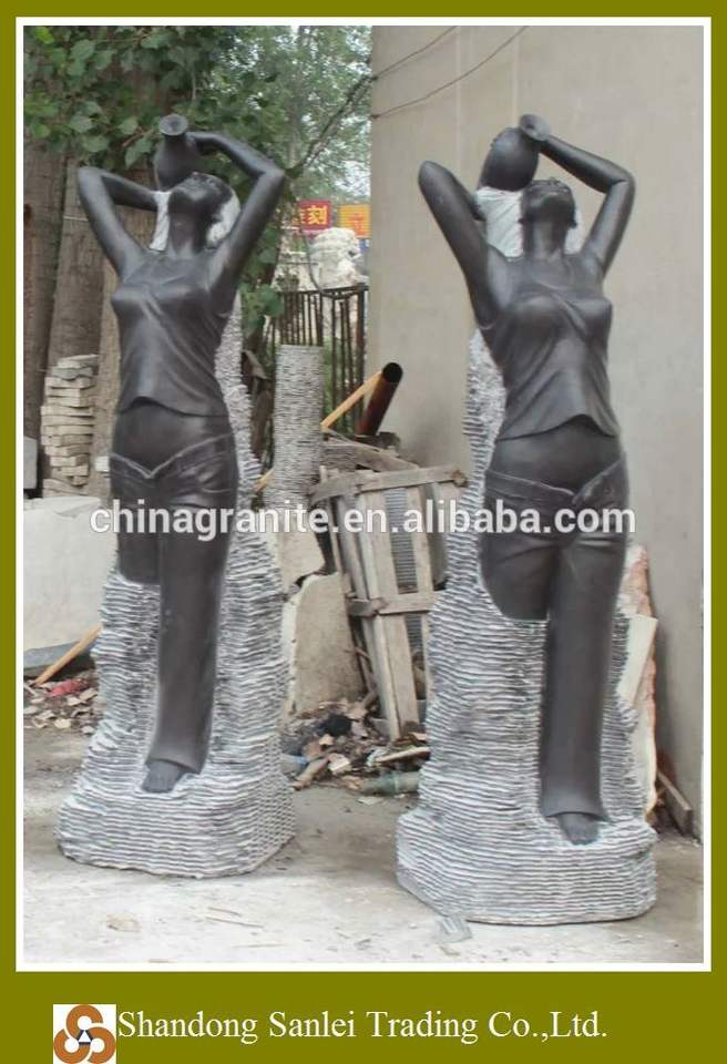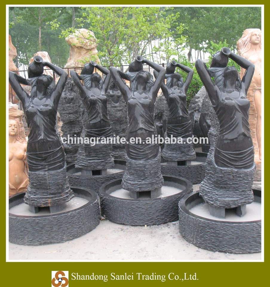 a piece of Factory decoration landscaping design waterfall figure statue sculpture black marble nude woman fountain according to the order quantity