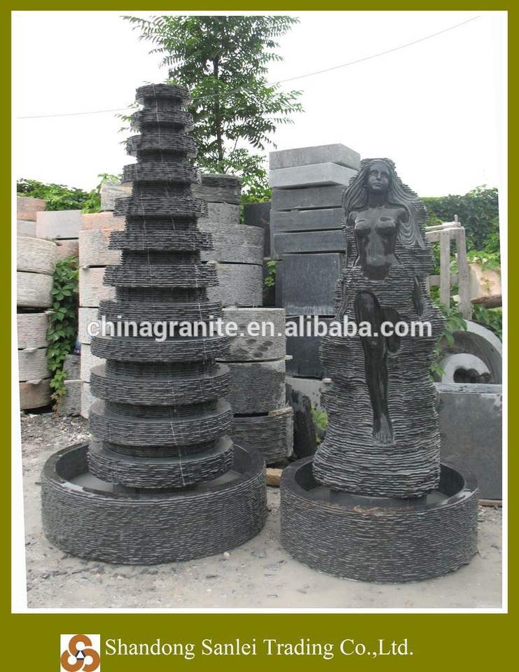 Decoración de fábrica paisajismo diseño cascada figura estatua escultura mármol negro mujer desnuda fuente