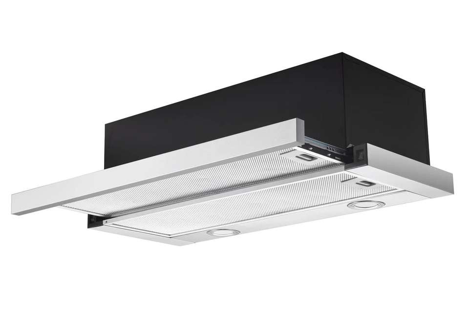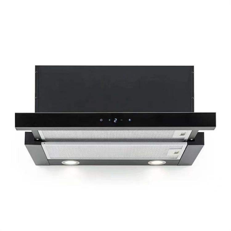 Extractor de cocina con campana extractora telestópica de diseño de fábrica color negro y acero inoxidable con filtros de aluminio Control de botones