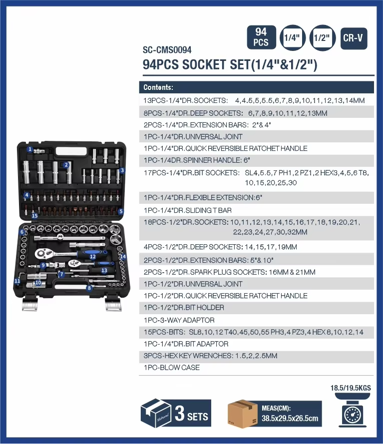 Juego de herramientas de 94 piezas, caja de herramientas, juego de herramientas manuales, juego de llaves de vaso