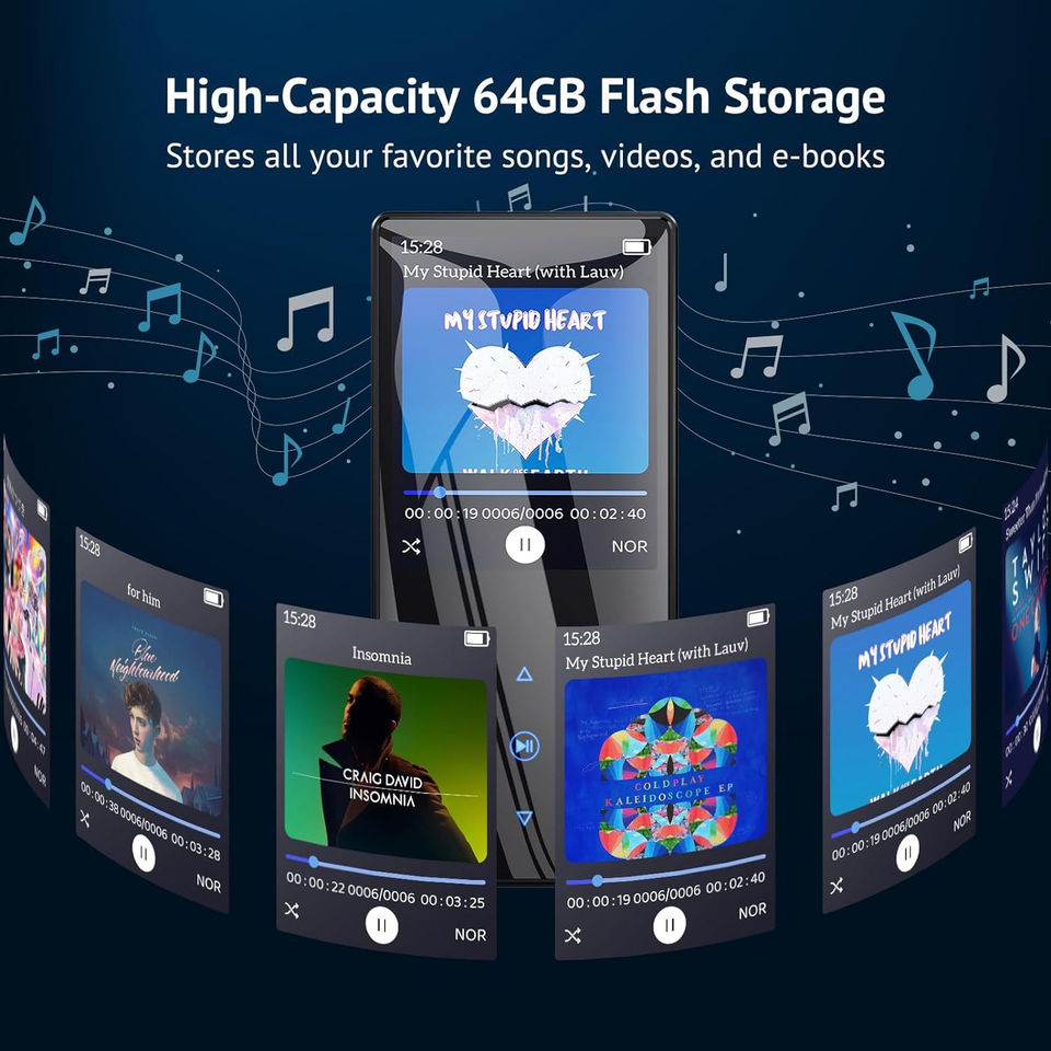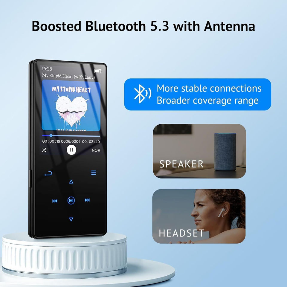 Reproductor MP3 de 1.8 Pulgadas Directo de Fábrica, BT 5.0, Radio FM, Libro Electrónico, Grabadora de Video, Compatible con Tarjeta TF de 64GB, Reproductor de Música Portátil