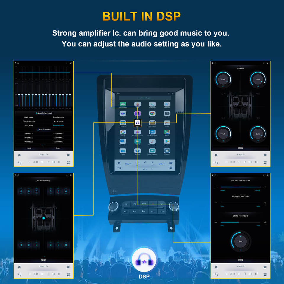 Función:Estéreo, DSP, CarPlay, Enlace espejo, Android auto, Pantalla dividida, Administrador de archivos, Coche de Control de volante