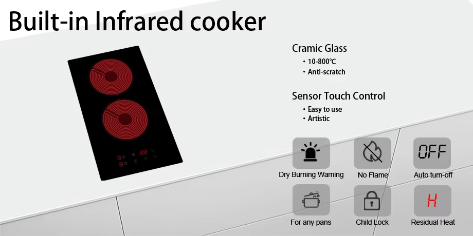 Placa de Cocina Infrarroja de 12 Pulgadas con Apagado Automático para Cocina, Directo de Fábrica