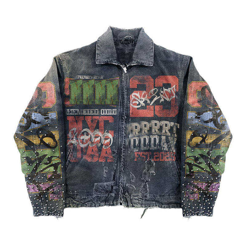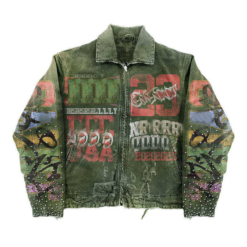 Chaqueta Vaquera Vintage para Hombre 2025, con Pedrería, Lavado Personalizado, Estilo Urbano, Venta al Por Mayor OEM, Directo de Fábrica