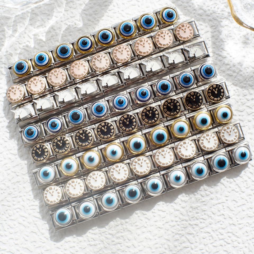 Directo de Fábrica, Brazalete Modular DIY de Acero Inoxidable 304, Chapado en Oro, Dijes de Ojo Turco Italianos, Diseño Geométrico Moderno, Elástico