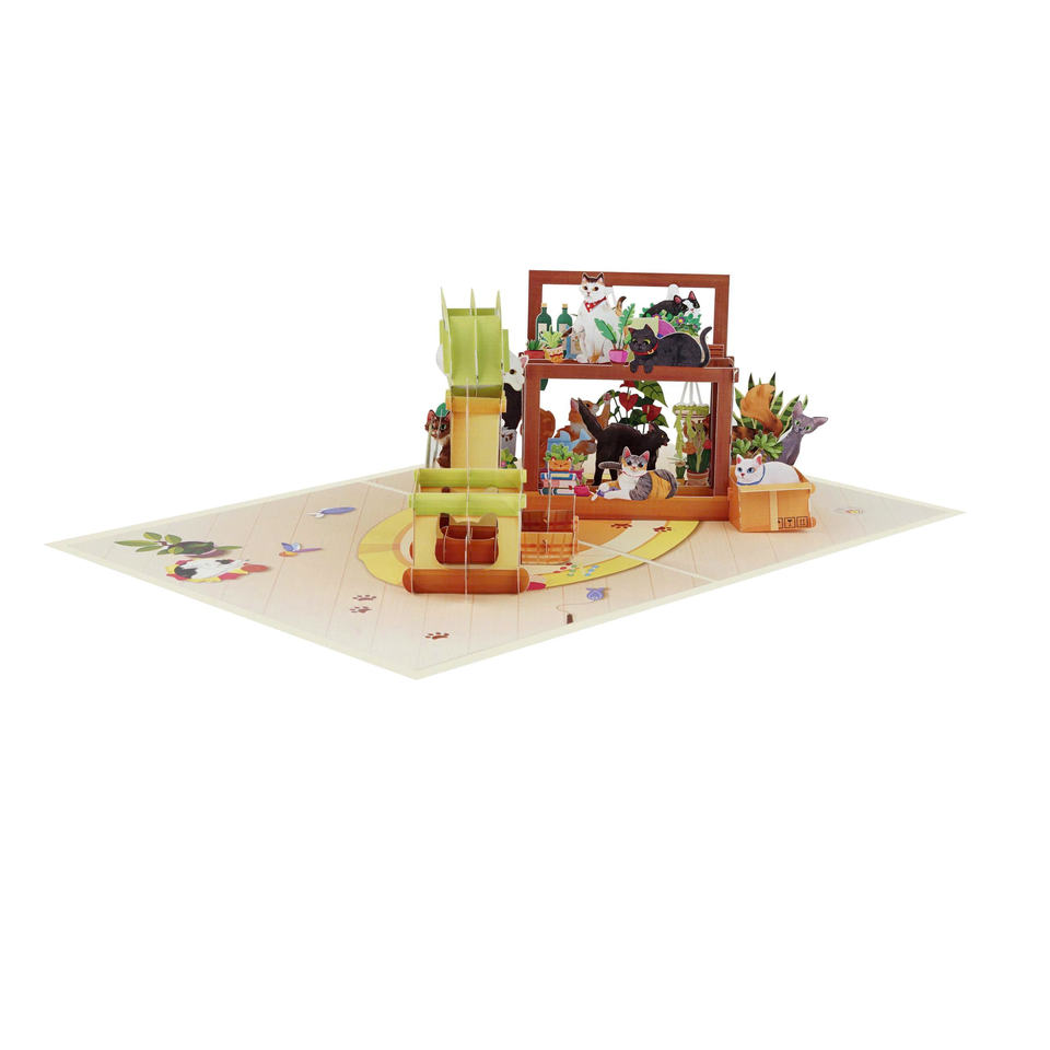 Tarjeta de felicitación 3D pop-up de árbol de gatos, hecha a mano, OEM, personalizada, de papel, suministro a granel, directo de fábrica