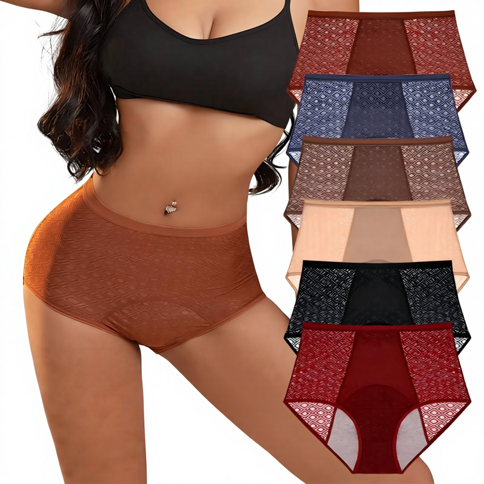 Ropa Interior de Punto para Mujer, 6 Colores Sólidos, 3 Capas de Malla Transpirable, Corte Medio, Antifugas, Super Absorbente, Talla XL, Directo de Fábrica