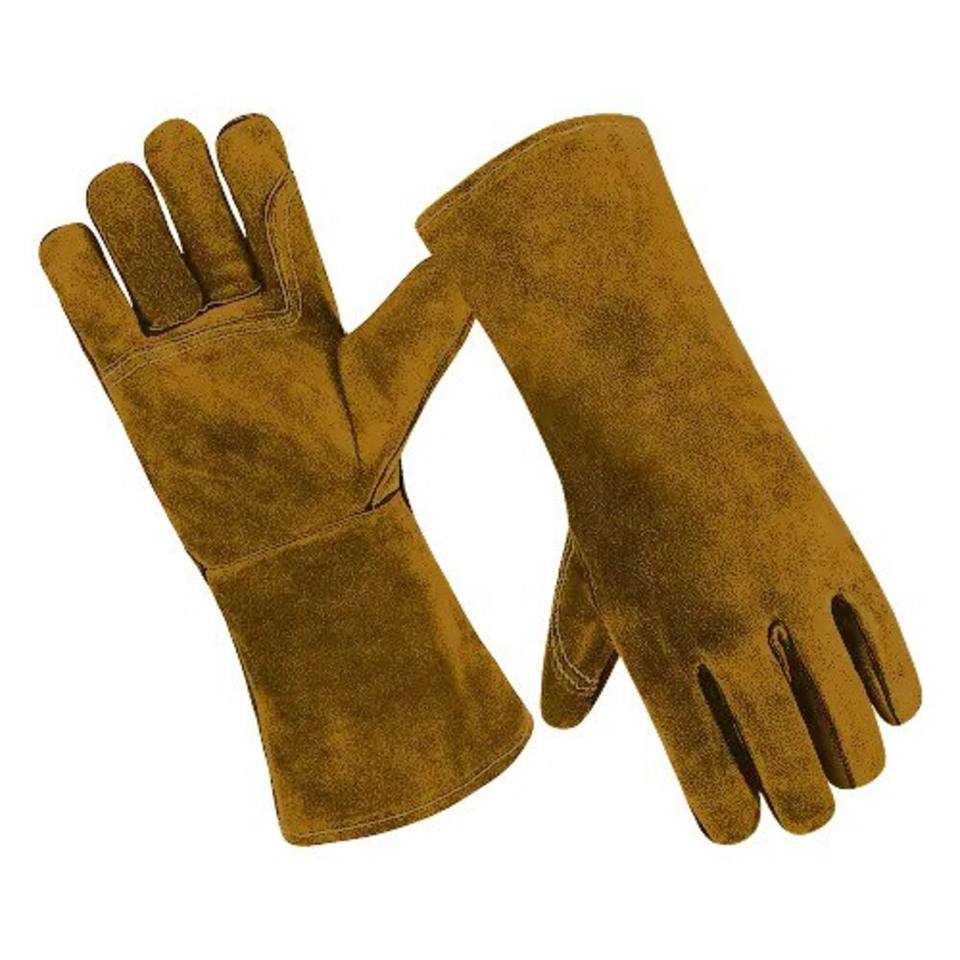 Guantes de Soldadura de Cuero Vacuno de Dos Capas, Directo de Fábrica, Todos los Tamaños, Largos, Resistentes al Fuego, Forrados con Forro Polar, Engrosados y Resistentes al Desgaste