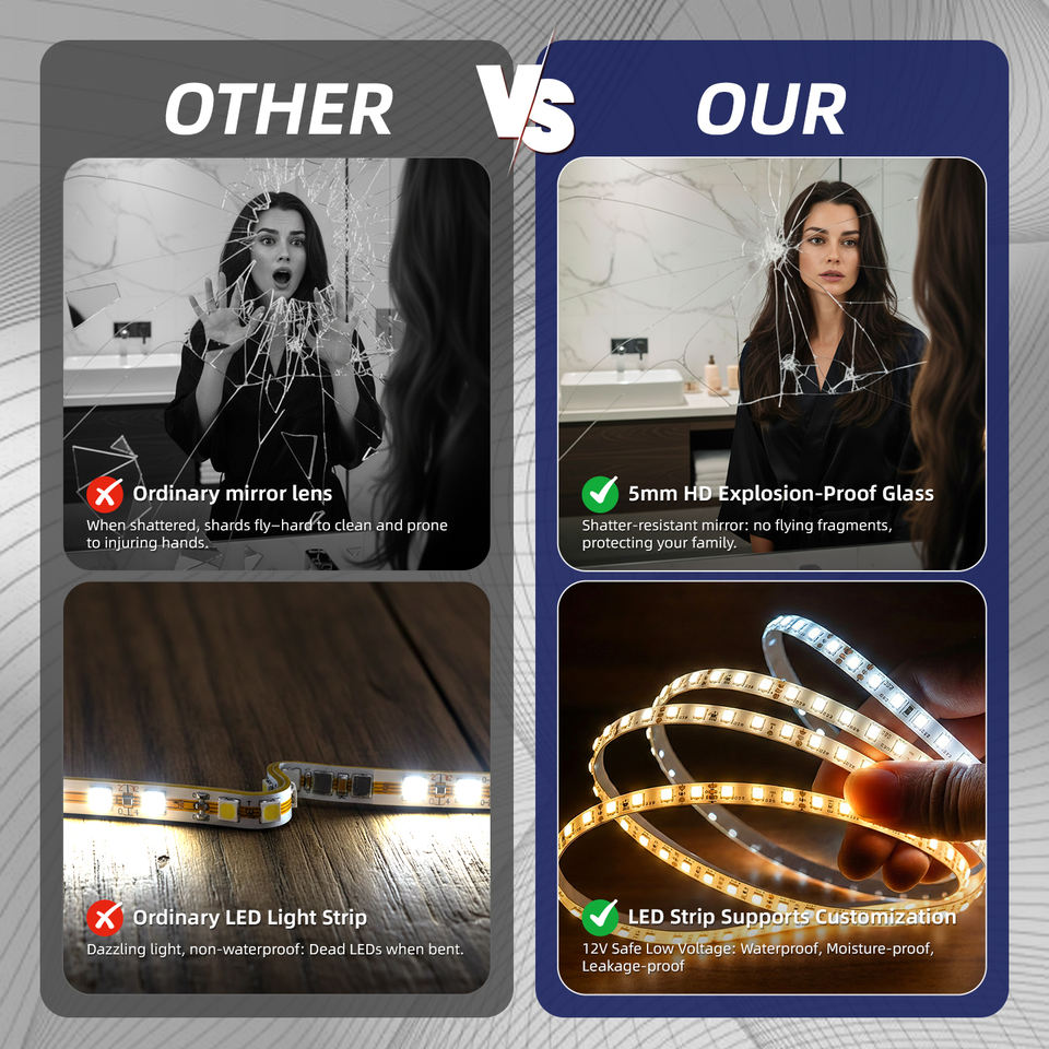 Espejo LED Arqueado sin Marco con Desempañador, Impermeable IP65 - Directo de Fábrica - para Baños de Hotel y Salón, Dormitorios y Tocadores