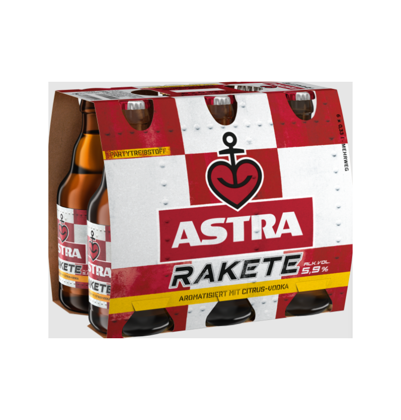 Cerveza original Astra Rakete 27x0,33L de Fábrica Directa, Bavaria St Pauli GmbH Hamburgo, mezcla para bares y cadenas de supermercados.