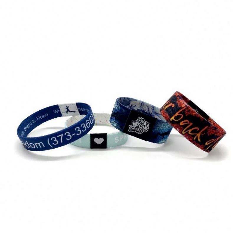 Correa de Muñeca Elástica Personalizada con Etiqueta Tejida por Sublimación, Diseño de Correa Corta, Directo de Fábrica, para Conciertos y Festivales de Música