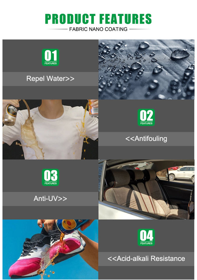 Tela textil hidrofóbica para Interior de coche, Spray de recubrimiento Nano para coches, tren, barco, zapatos, ropa, logotipo personalizado, directo de fábrica