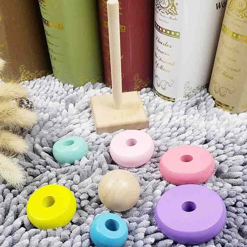 Juguete Educativo de Torre de Arcoíris para Niños, Directo de Fábrica, 40 Piezas, Animales, Tema de la Naturaleza, Color Macaron, Madera Yunhe