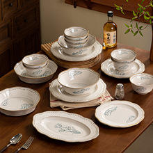 Juego de Vajilla de Cerámica Resistente, Directo de Fábrica en China, con Elegantes Diseños Florales Estilo Europeo/Norteamericano, Reutilizable