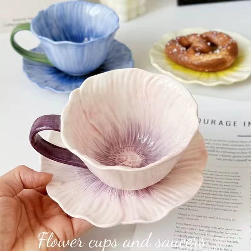 Juego de Taza y Platillo de Cerámica con Diseño Clásico, Ecológico, Apto para Horno, Estilo Floral, Capacidad de 250 ml, Pintado a Mano, Directo de Fábrica