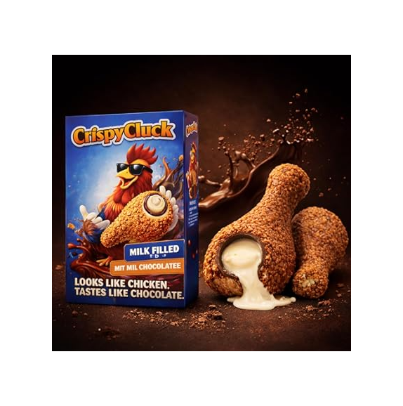 Ingredientes:Chocolate con leche con forma de pollo frito Crispy Cluck
