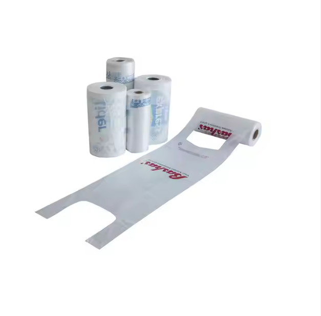 Bolsas ecológicas para camisetas con logotipo colorido personalizado directo de fábrica, bolsas de compras gruesas, grandes y blancas para tiendas de comestibles, marca HM