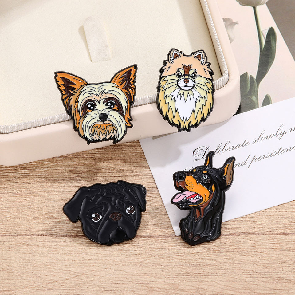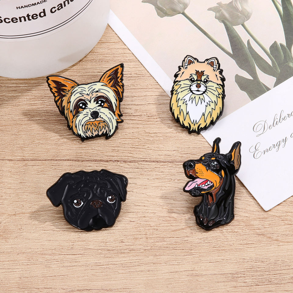 Pins Esmaltados Personalizados de Razas de Perros Directo de Fábrica - Insignias Temáticas Lindas de Yorkshire, Pomeranian, Doberman y Pug con ODM y OEM
