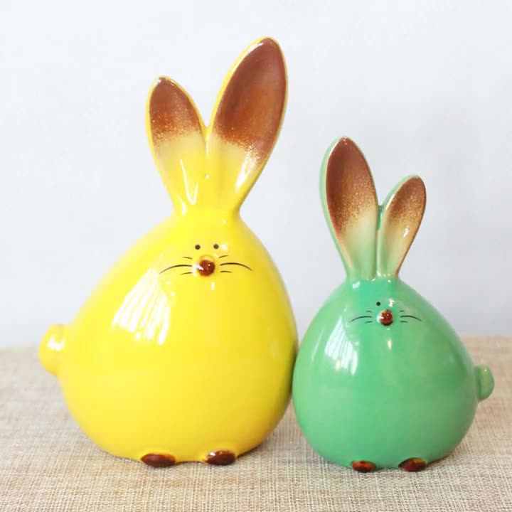 Directo de fábrica personalizado ecológico Pascua cerámica conejo Animal conejito figuritas ornamento varios colores porcelana conejito sostener huevo
