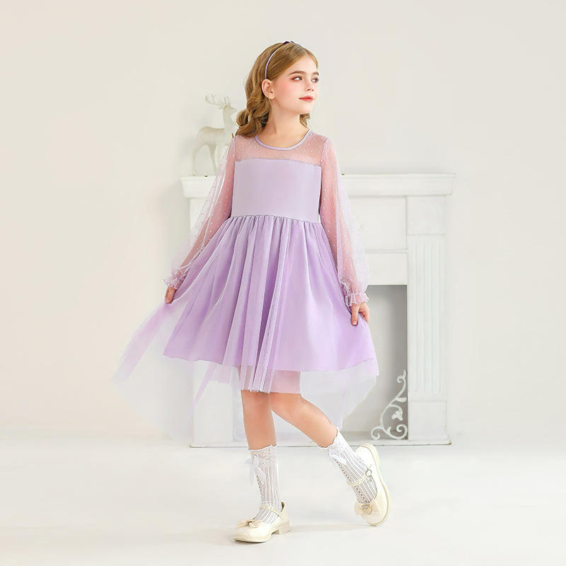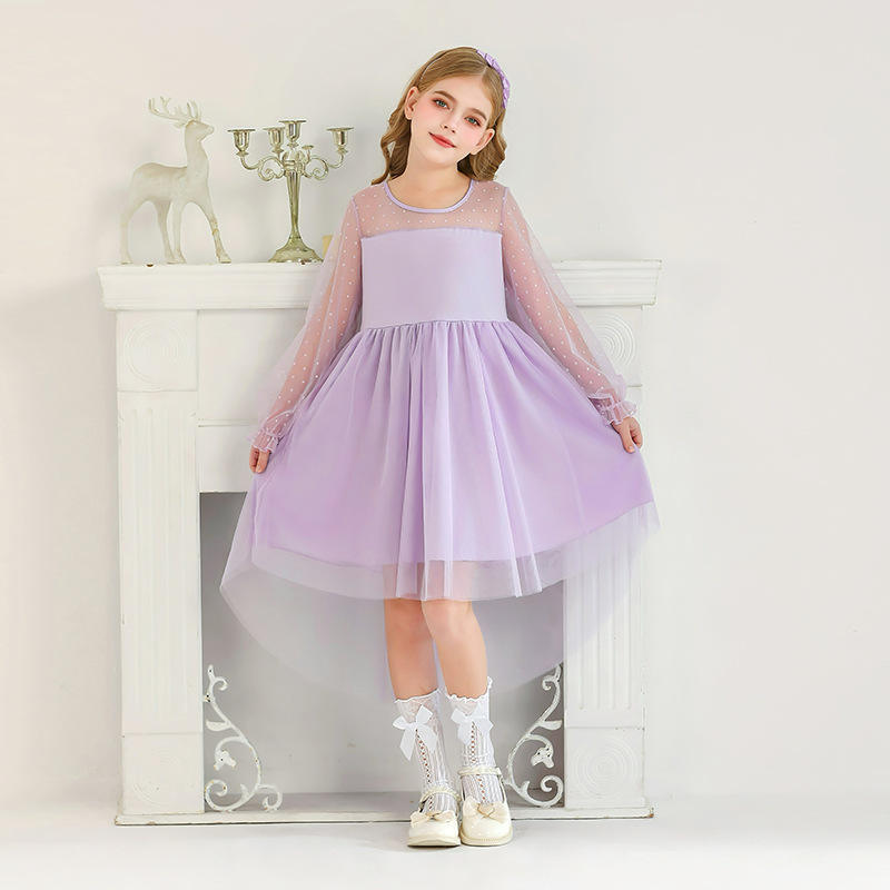 Vestido Formal Personalizado para Niñas Directo de Fábrica, Nuevo Vestido de Princesa de Malla con Manga Larga de Encaje 2026, Ropa para Actuaciones Navideñas Infantiles