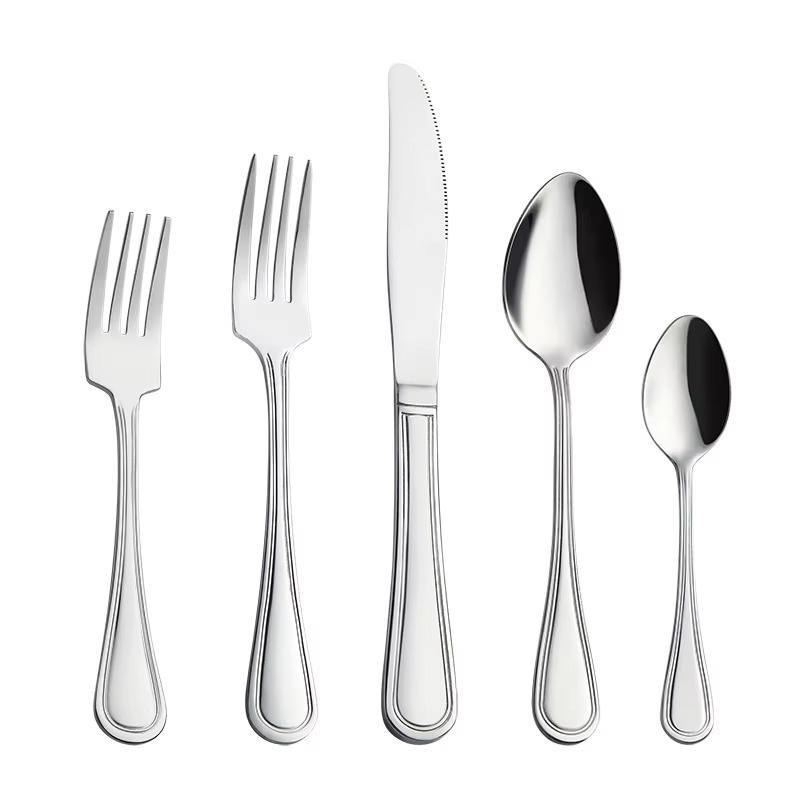 Vajilla elegante caliente personalizada directa de fábrica, cubiertos de acero inoxidable chapados en plata, cuchillo, cuchara, tenedor, juego de cubiertos