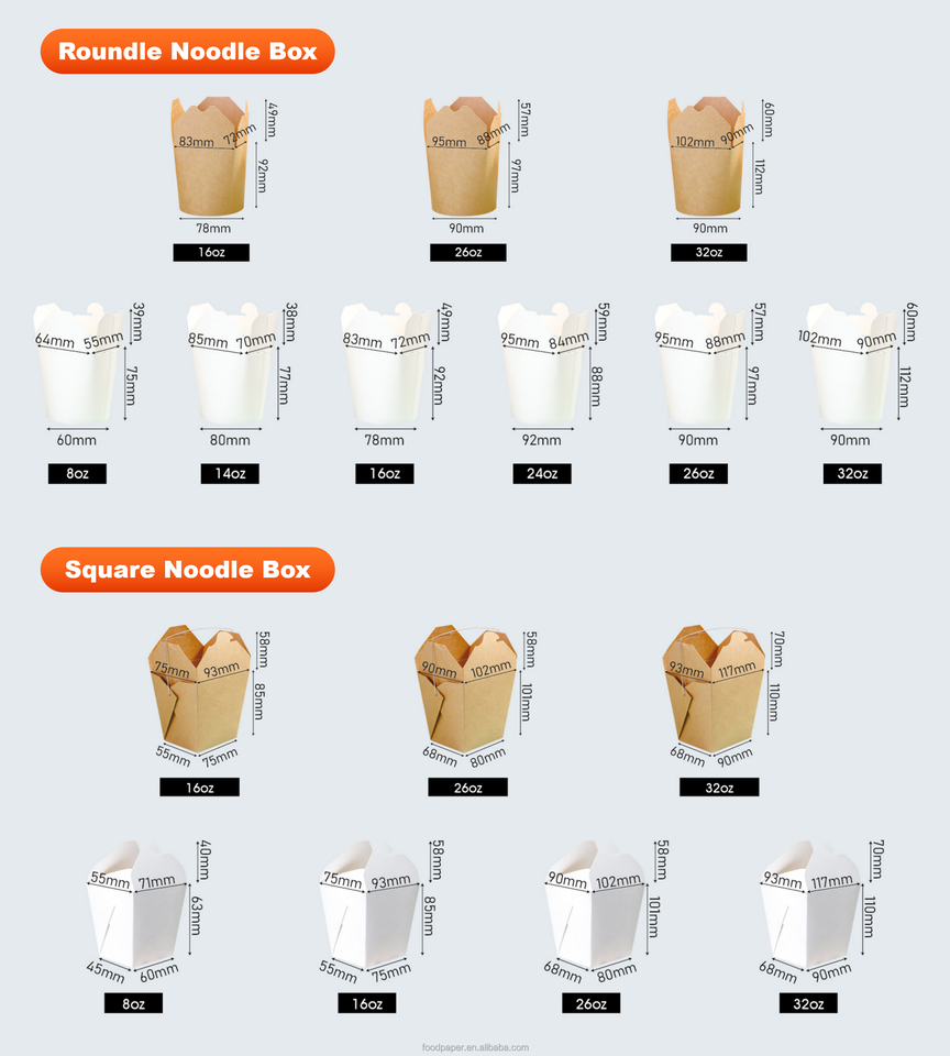 Caja Redonda de Papel para Llevar Fideos Chinos