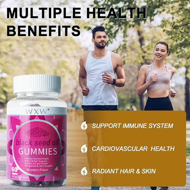 Directo de fábrica, aceite de semilla negro orgánico personalizado, gomitas, dieta, suplementos para el cuidado de la salud, desintoxicación, salud del hígado, dulces de goma