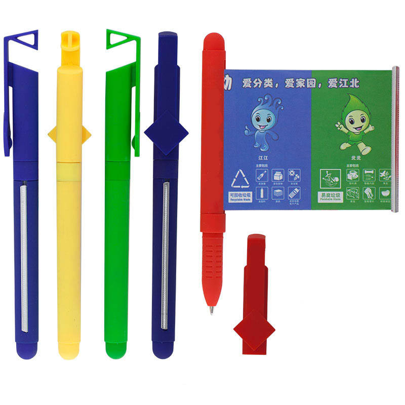 Directo de fábrica personalizado estilo extraíble Banner bandera Logo pluma 1,0mm ancho de escritura bolígrafo de plástico precio barato