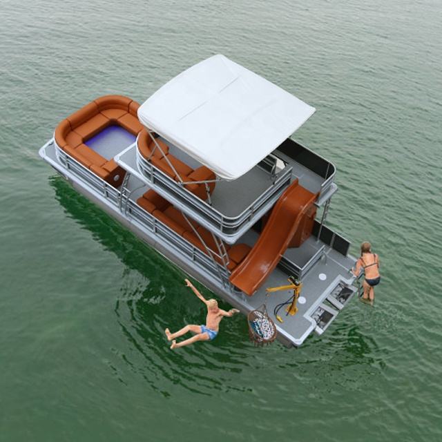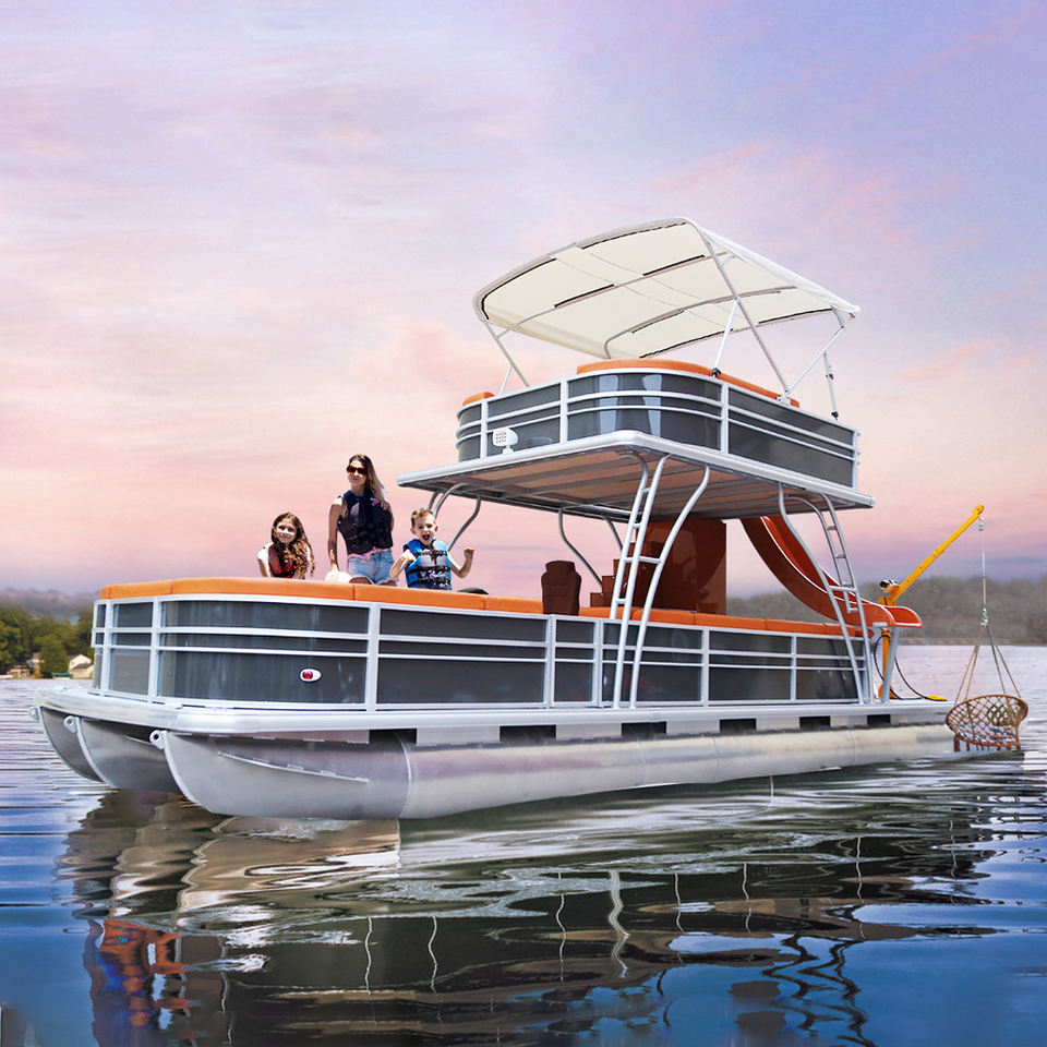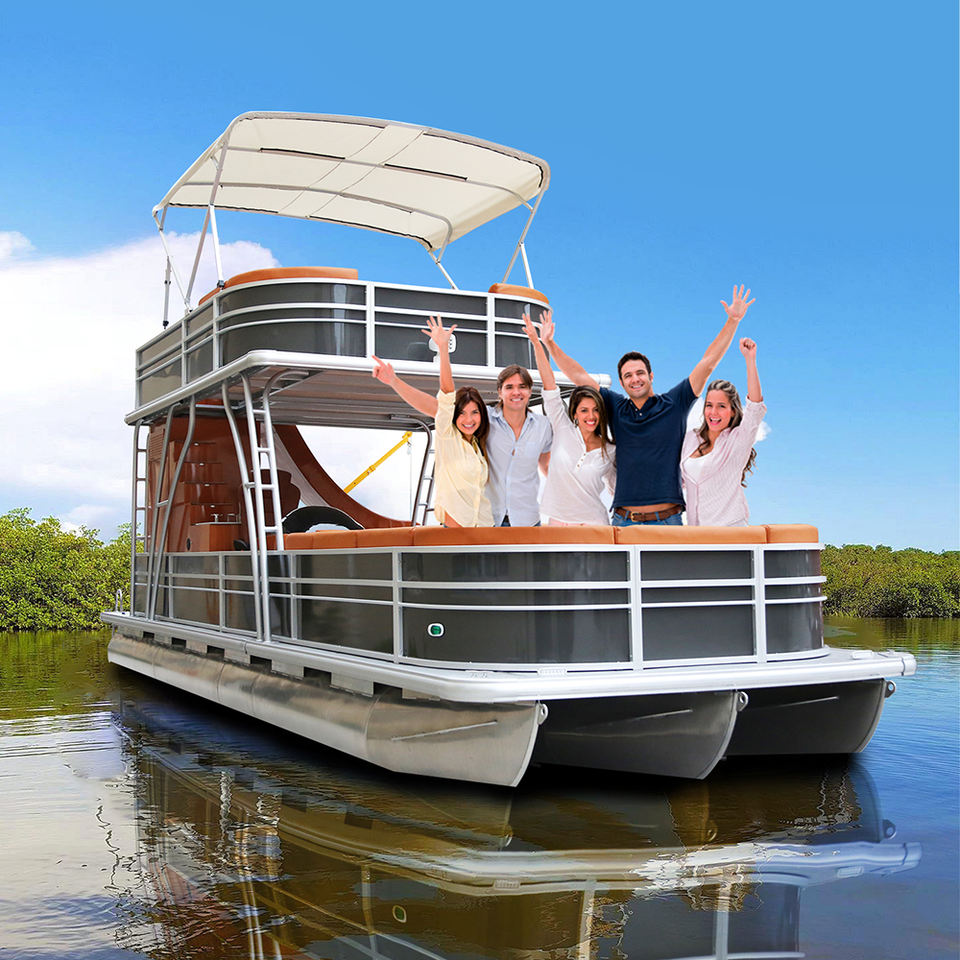 Bote Pontón de Lujo de 27 pies, de Dos Pisos, Personalizable, Directo de Fábrica, con Motor de Fibra de Vidrio Soldado, Versátil para Recreación Acuática al Aire Libre