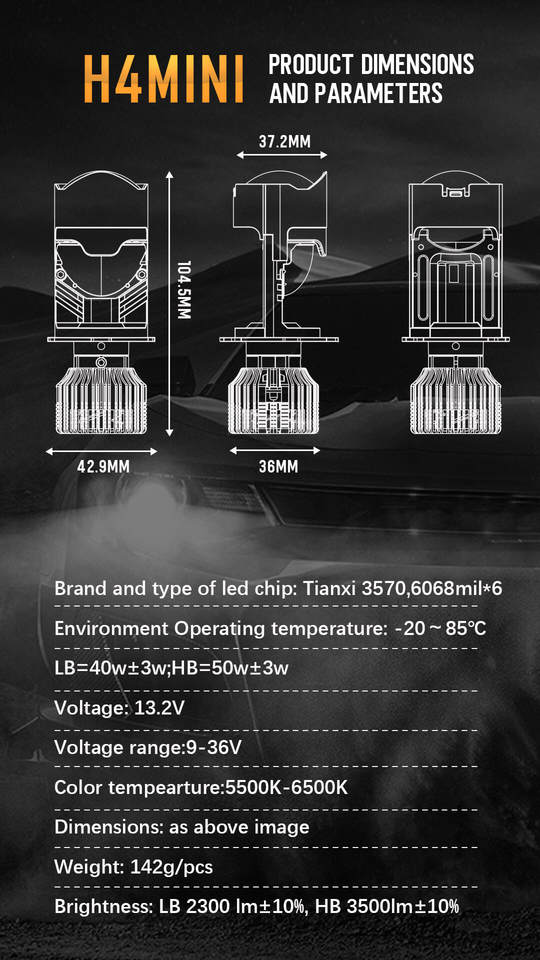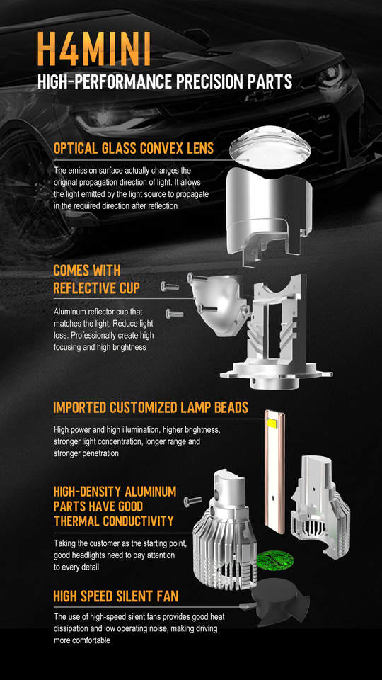 Personalización directa de fábrica Auto Led H4 Mini proyector faro H4 Led faro coche proyector presta