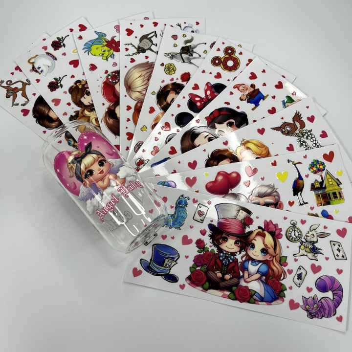 Personalización directa de fábrica UV para envolturas de copa DTF, transferencias listas para enviar y calcomanías para tazas, diseños impresos personalizados
