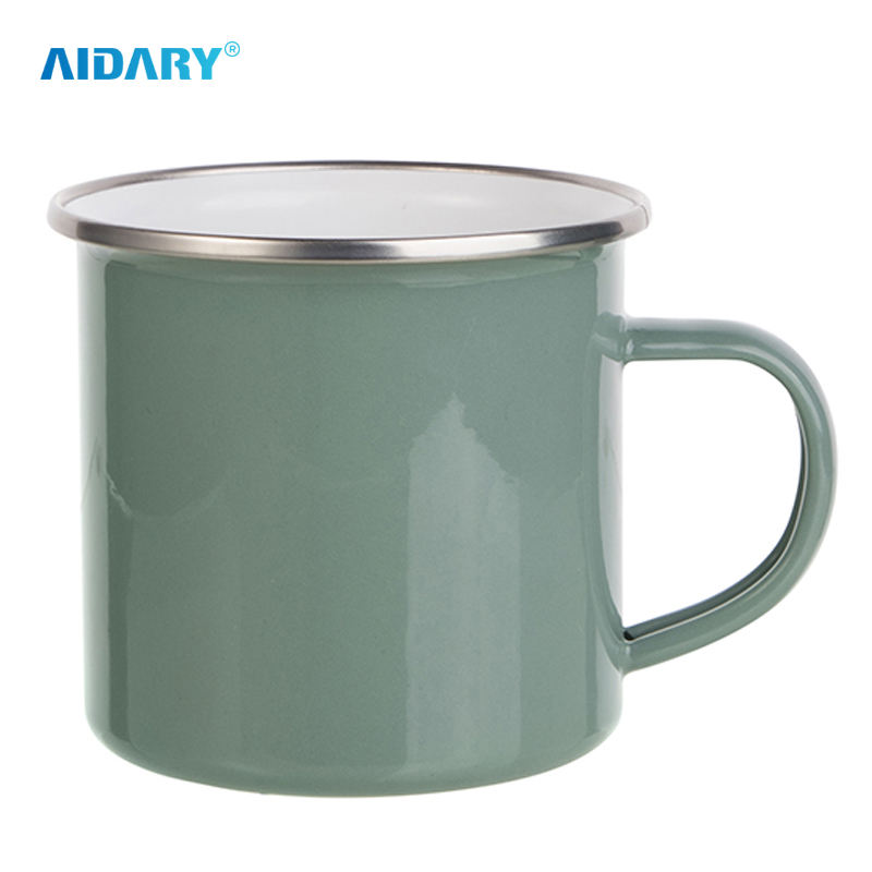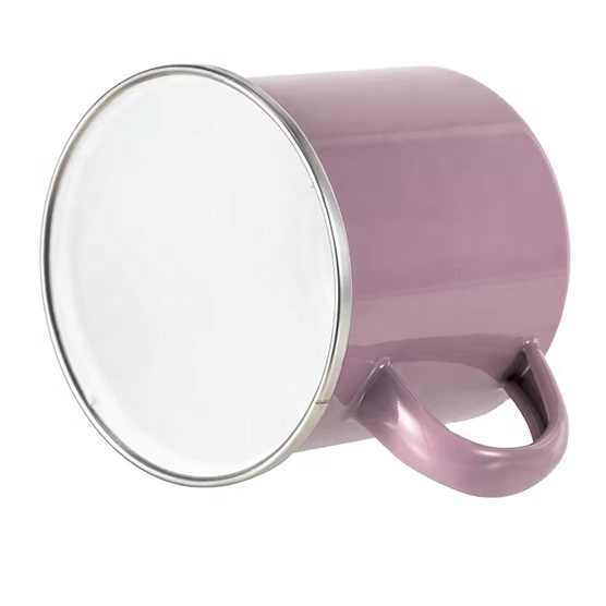 Directo de fábrica personalizado 10oz vaso de acero inoxidable bordes enrollados manijas colorido esmalte de Metal Camping taza sublimación directa