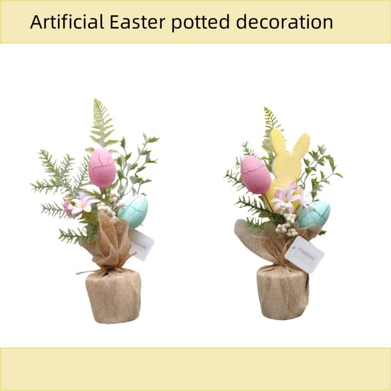 Directo de fábrica DIY decoración Ornamental para el hogar flores artificiales en maceta suaves duraderas con conejito pájaro huevo primavera comedor hecho a mano