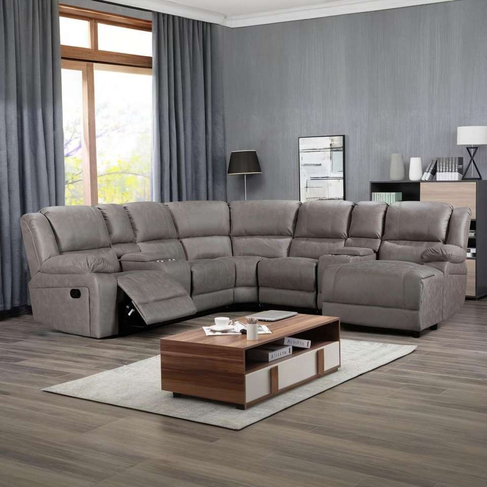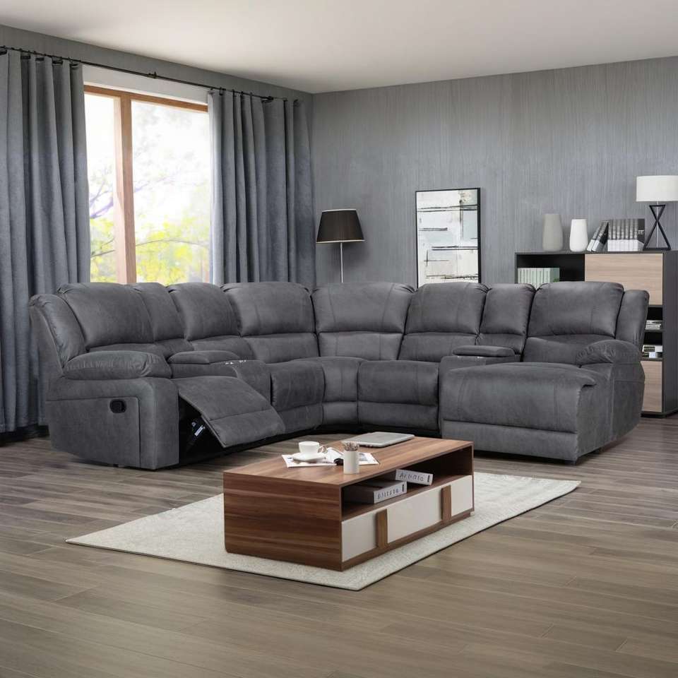 Sofá Esquinero Eléctrico Reclinable Directo de Fábrica, Diseño Moderno, Estructura de Madera, Tapicería de Tela Extensible, Masaje, Refrigeración, Control Remoto