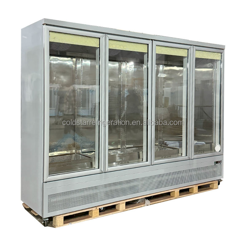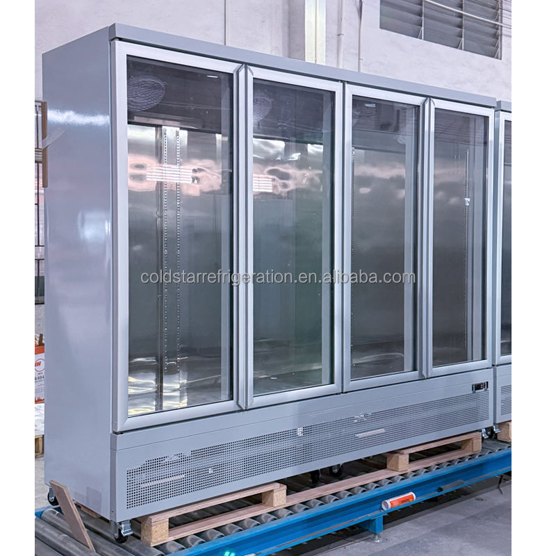 Congelador comercial de cuatro puertas directo de fábrica, tienda de conveniencia para supermercado, gabinete de cerveza y bebidas, equipo de refrigeración Vertical