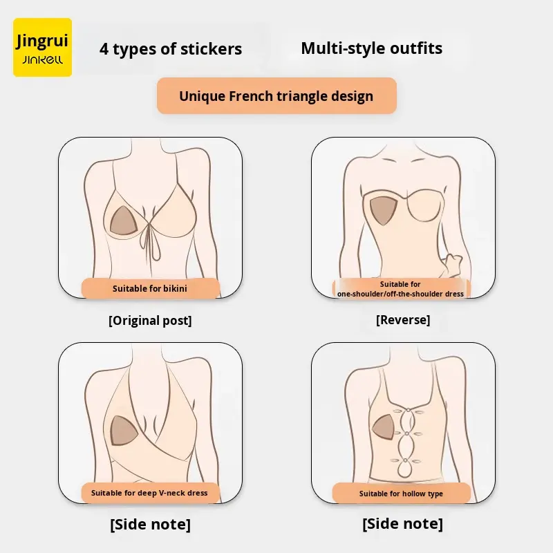 Pétalos Triangulares para el Pecho Estilo Francés, Ultrafinos, Lavables, Invisibles, Sin Costuras, Anti-Exposición, Anti-Protuberancias, Bikini