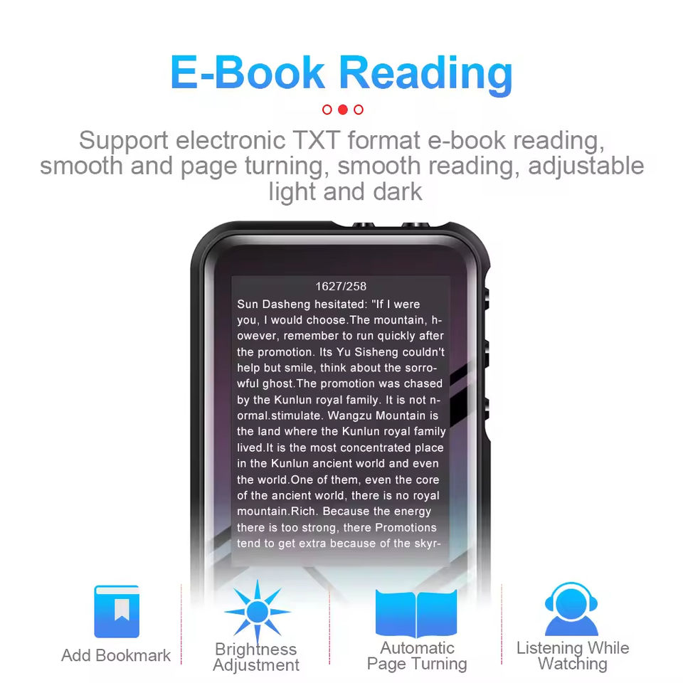 Reproductor MP3 Portátil con Pantalla Táctil Completa, Reproducción de Video, Libro Electrónico, Radio FM, Grabadora de Voz, Batería de Larga Duración, Directo de Fábrica