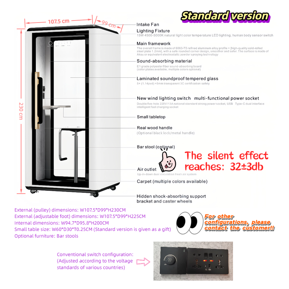 Estación de trabajo totalmente insonorizada directa de fábrica, cápsula de privacidad acústica para cabina telefónica, hoteles, almacenes, salas de estar, centros comerciales de aluminio