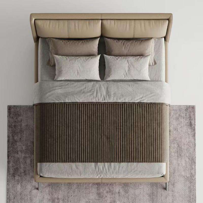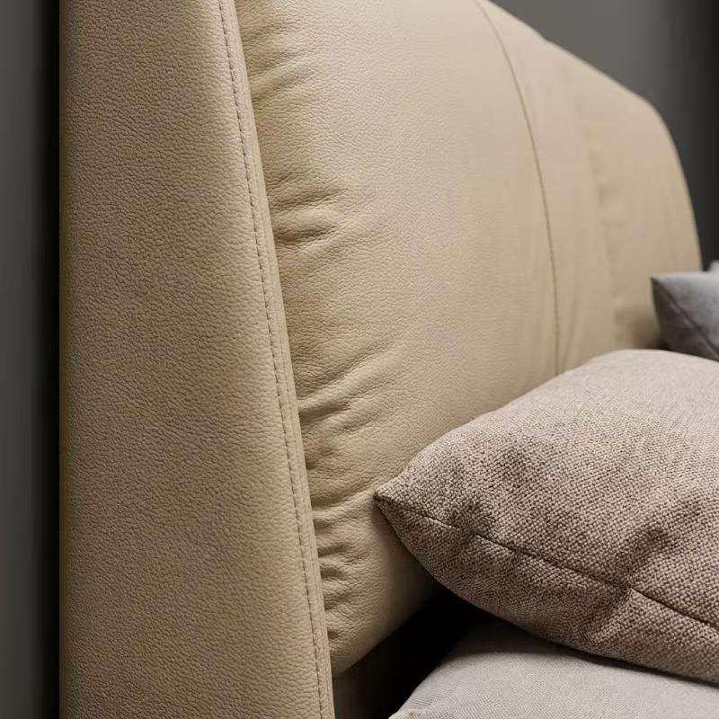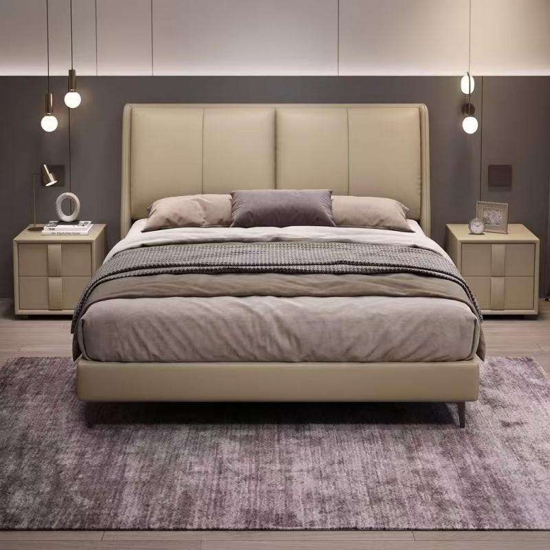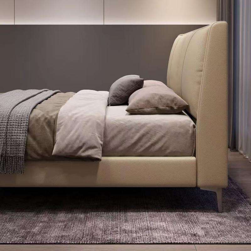 Base de Cama con Sistema de Elevación a Gas, Directo de Fábrica, Madera Sólida, Láminas Silenciosas, Cuero Genuino, Tamaño Queen, para Dormitorio Moderno y Lujoso