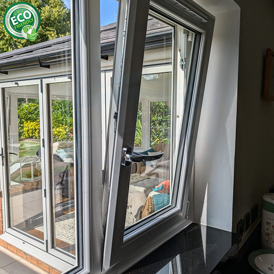 Ventana Abatible y Giratoria de Doble Vidrio Templado con Marco de Aluminio Insonorizado de Buena Calidad Directo de Fábrica para Uso Residencial