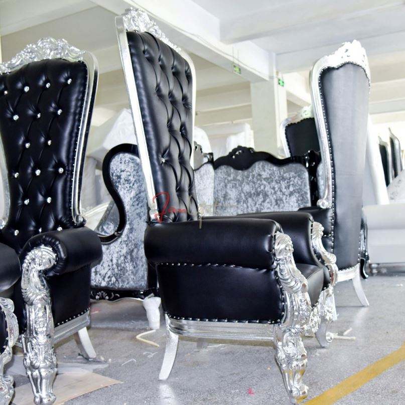 Sillas de trono de rey negro de alquiler de boda con respaldo alto directo de fábrica