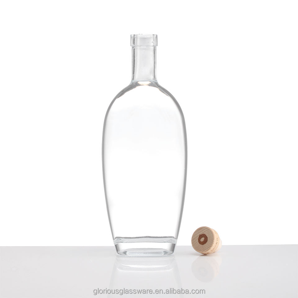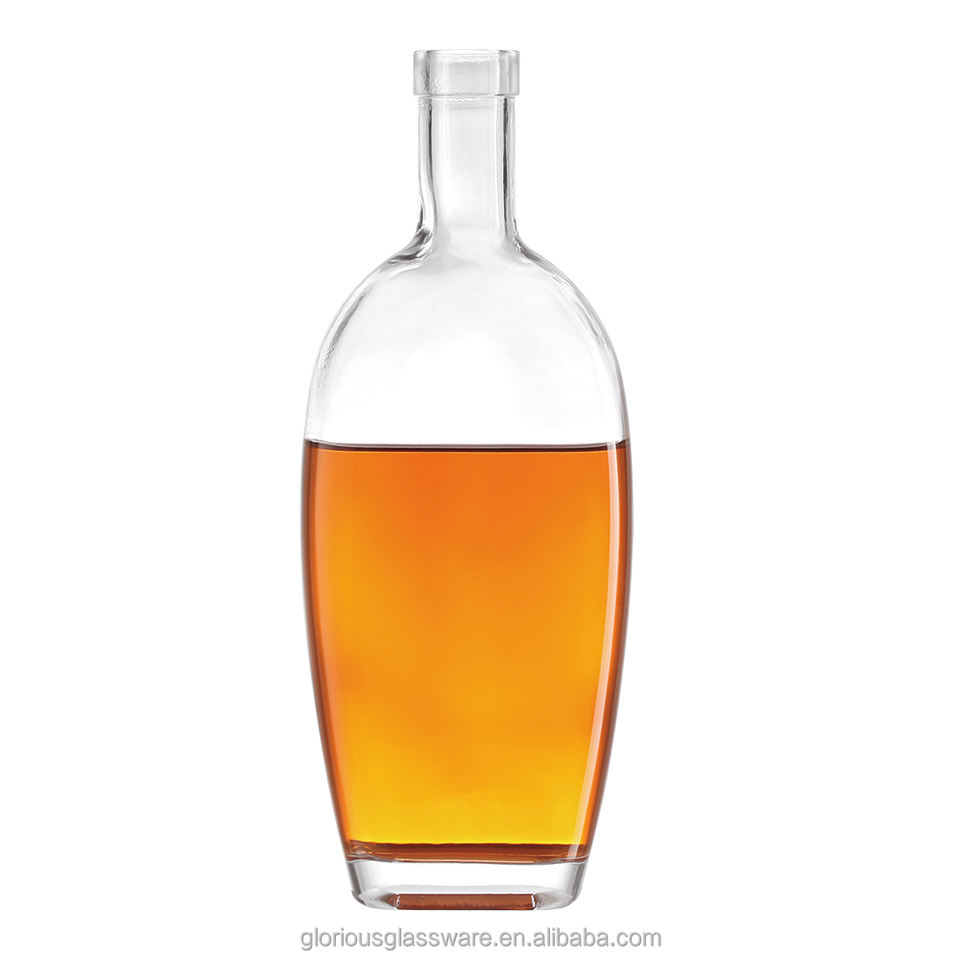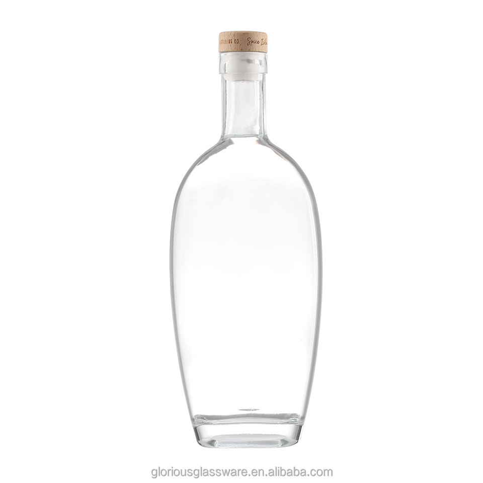 Botella de Whisky de Cristal Blanco de Alta Gama, Directo de Fábrica, 700ml 750ml, Forma de Huevo, Cuello Corto, Elegante Botella Vacía para Licores y Vino