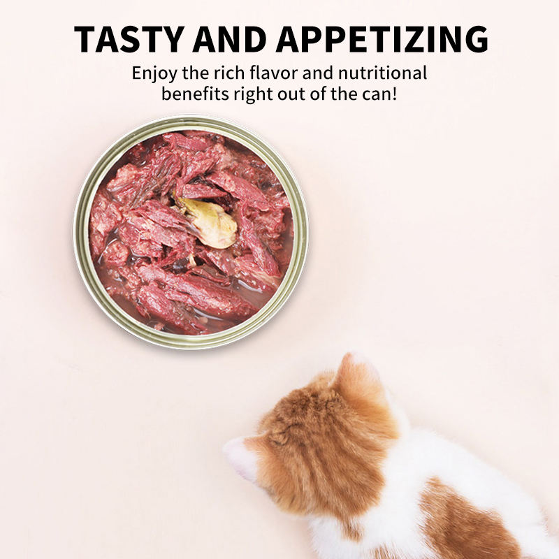Directo de fábrica de alta proteína de pollo natural, carne de res, atún comida enlatada para gatos en salsa húmeda comida para mascotas