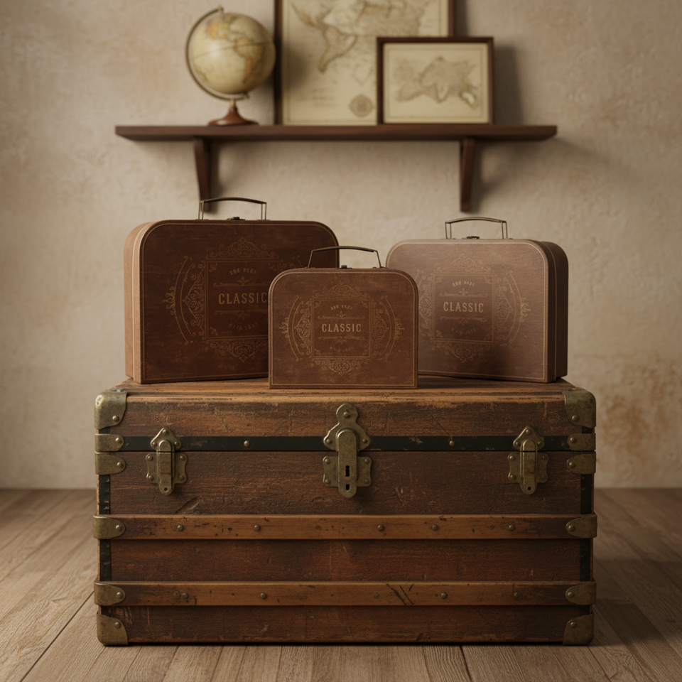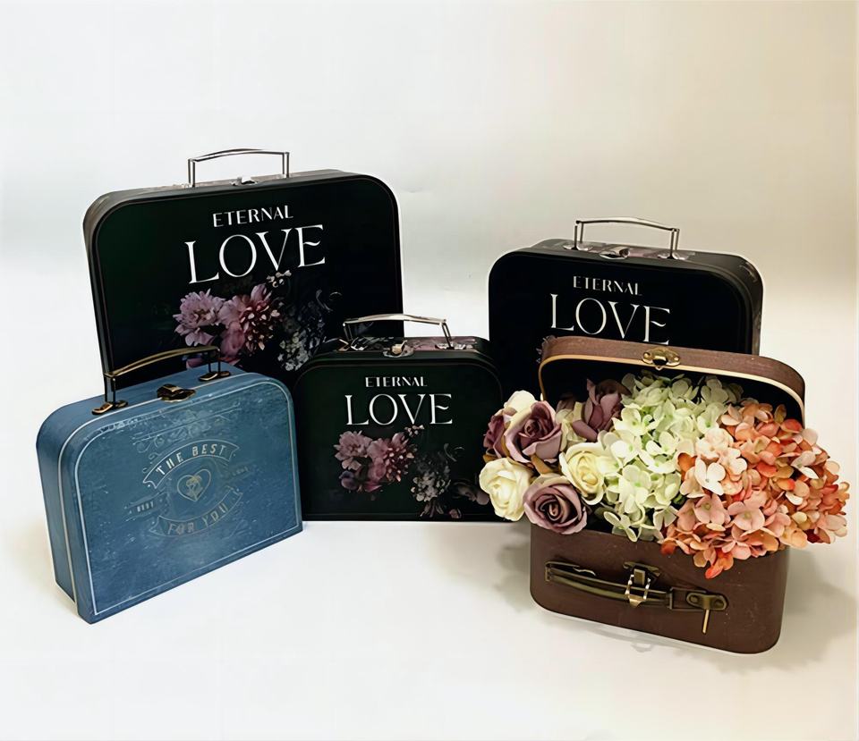 Maleta Vintage de alta calidad directa de fábrica, Juego de 3 piezas, caja de flores, caja de regalo de mano, caja de embalaje de regalo, Maleta