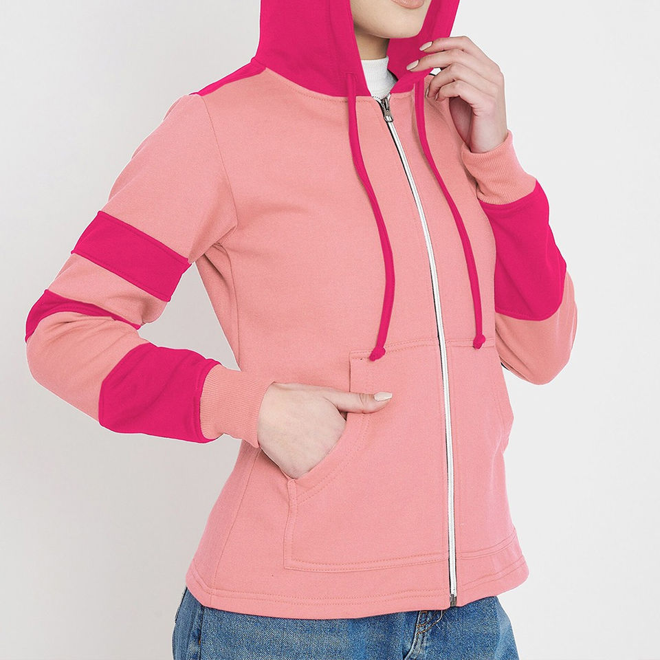 Directo de fábrica Venta caliente de alta calidad Mujeres Cremallera Sudaderas Manga larga Color Contraste Cremallera hasta Suelto Casual Invierno