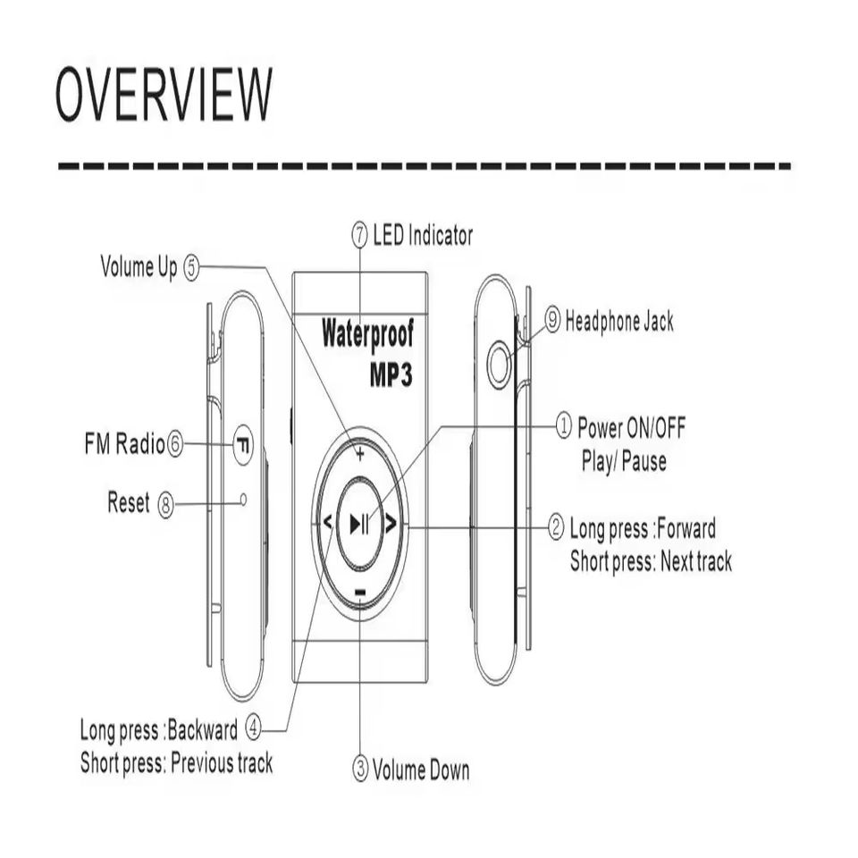 Reproductor MP3 Impermeable IPX8 Directo de Fábrica con 4GB/8GB Integrados, Radio FM, Grabadora, Lector de Libros Electrónicos, Reproductor de Música Portátil